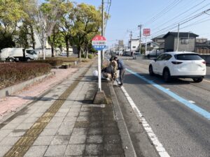 朝礼後、文化の森公園の大通り沿いや、フクマツ社屋周辺の通りを中心に掃き掃除やゴミ拾いを行っています。
