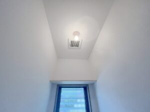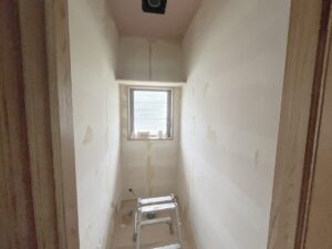 ↓解体が終わったら、床板を張り直し、天井もボードを貼っていきます。