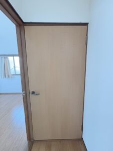 | 洋室の収納扉は壁クロスと同じもので仕上げました。 |