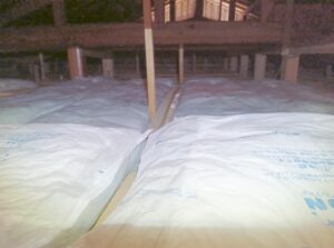 屋根裏はお客様のご希望で天井に断熱材を 入れました。 |