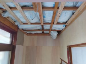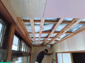 屋根裏に断熱材を敷き、天井板の張替えも行います。