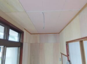 | 広縁の壁と天井に下地材を貼りました! |