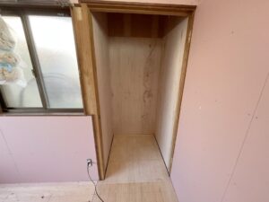 これから和室の押し入れを作り変えます。 今日は床貼りと壁下地まで終わりました! |