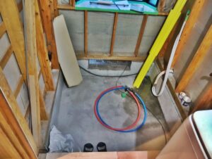 既存の浴室を解体・撤去し、換気扇用ダクト、給湯給水配管を設置します。