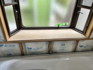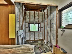 システムバスを組み込み、窓はカウンターを新しくするため、下地を張り替えます。