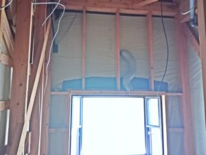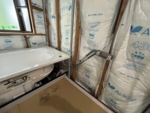 浴室内壁に断熱材を入れ、断熱工事を行います。
