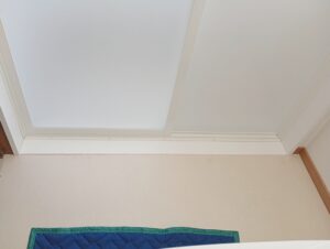 床は同じく隙間を下地材で塞ぎ、クッションフロアシートを貼りなおします。
