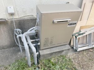 オートタイプのガス給湯器から追い焚き付きのCHOFUエコジョーズ20号へお取替えします。