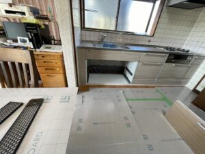 工事当日は、ご在宅のお客様にご迷惑をおかけしないよう、しっかりと養生(周囲を保護する作業)を行ってから作業を開始いたしました。