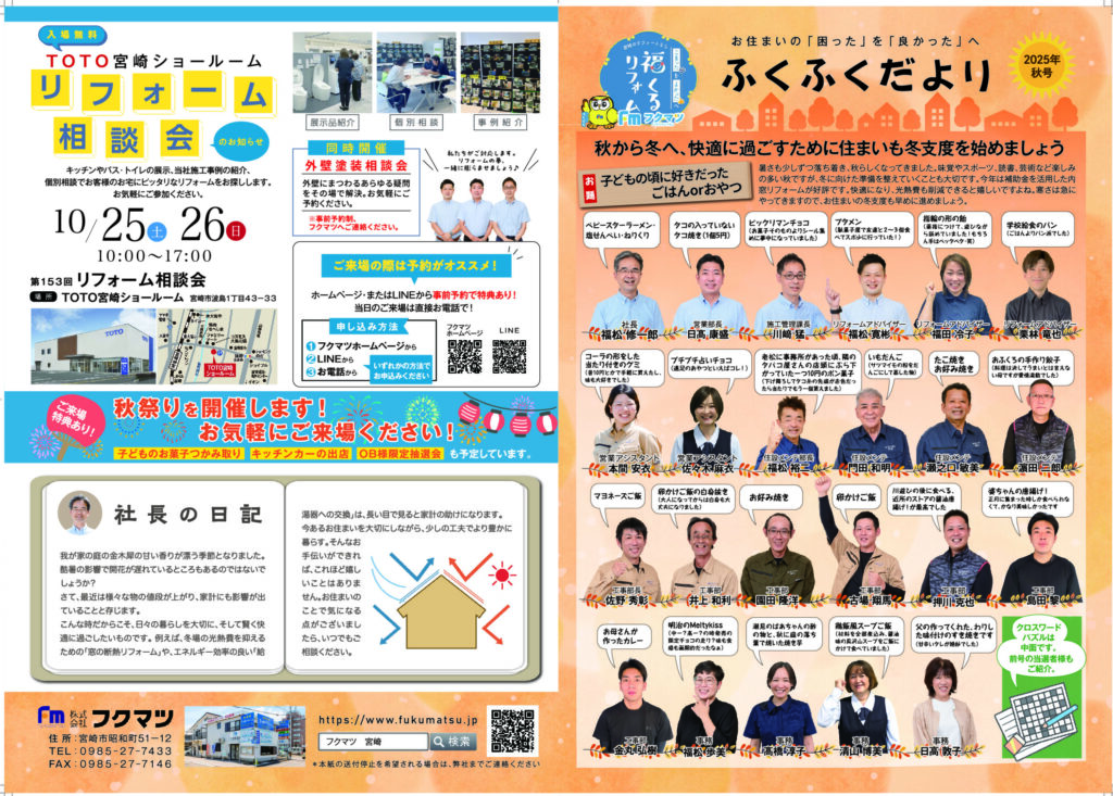 終了 10月 第153回 リフォーム相談会 in TOTO宮崎ショールーム 会場 TOTO宮崎ショールーム 宮崎市波島1-43-33 開催日時 10月25日(土)・10月26日(日)10:00~17:00 参加費 無料
