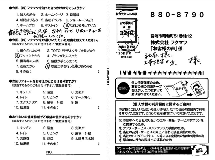 今回、(株)フクマツをお選びいただいた理由を教えてください。