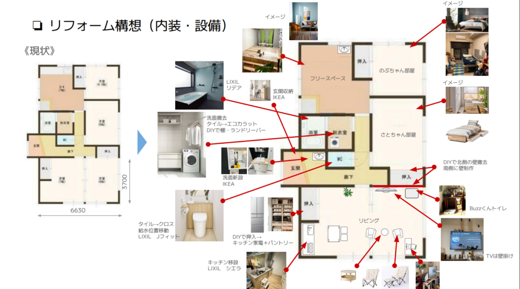 お客様が作成された計画資料をもとに、構造上の可否、設備配置の納まり、配管・電気のルート、動線のバランスを確認しながら、実現性の高いプランへ整理していきました。
