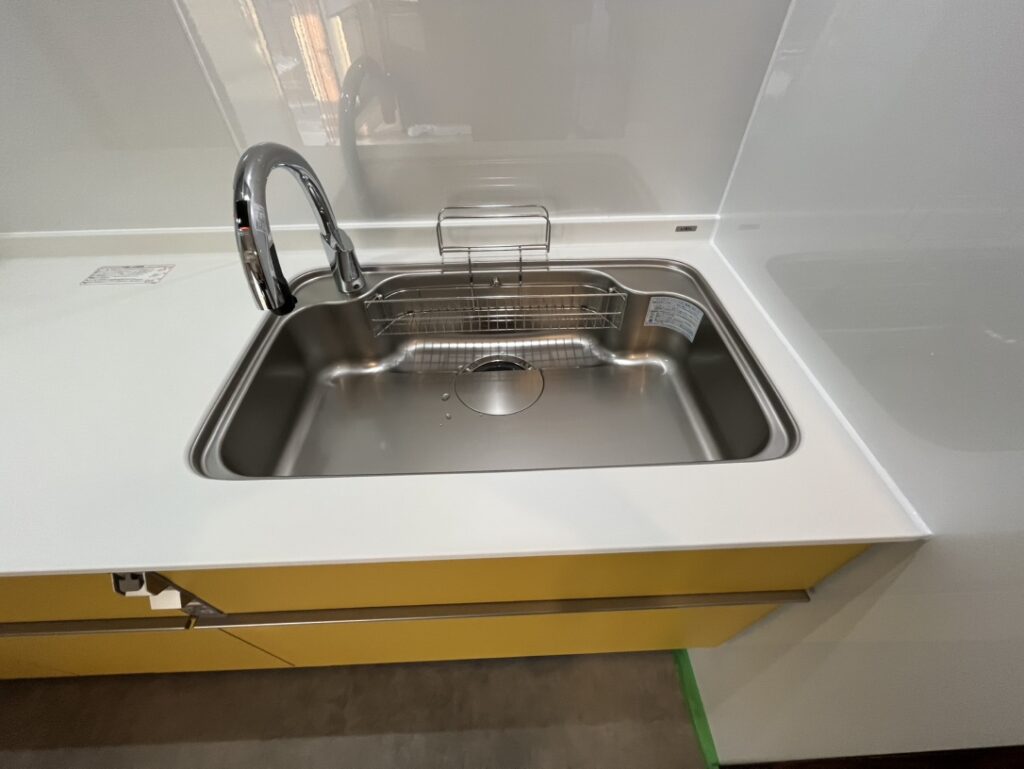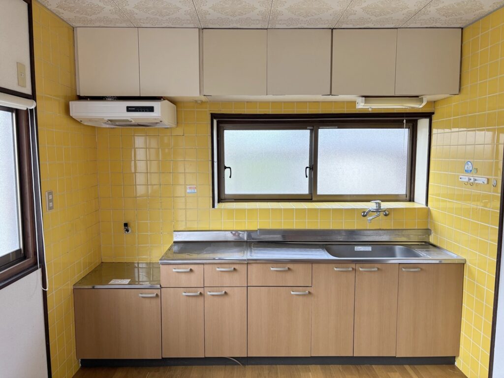 黄色のタイルがこの家を彩るメインカラーとなっていました。前のオーナー様は綺麗にお使いでしたが、設備機器は築年数相応の状態でしたので、全体的にリフレッシュしていきました。キッチンは間取りの用途変更による移設工事、浴室は在来浴室からユニットバスへの工事を計画しました。給湯設備もガス給湯器だったため、省エネ性を考慮してエコキュートへの変更を検討されました。